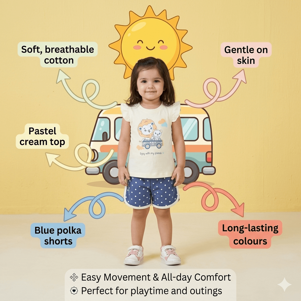 The Girls Friends Ride Set by Mumchu blends comfort and charm in a delightful frill-top design.